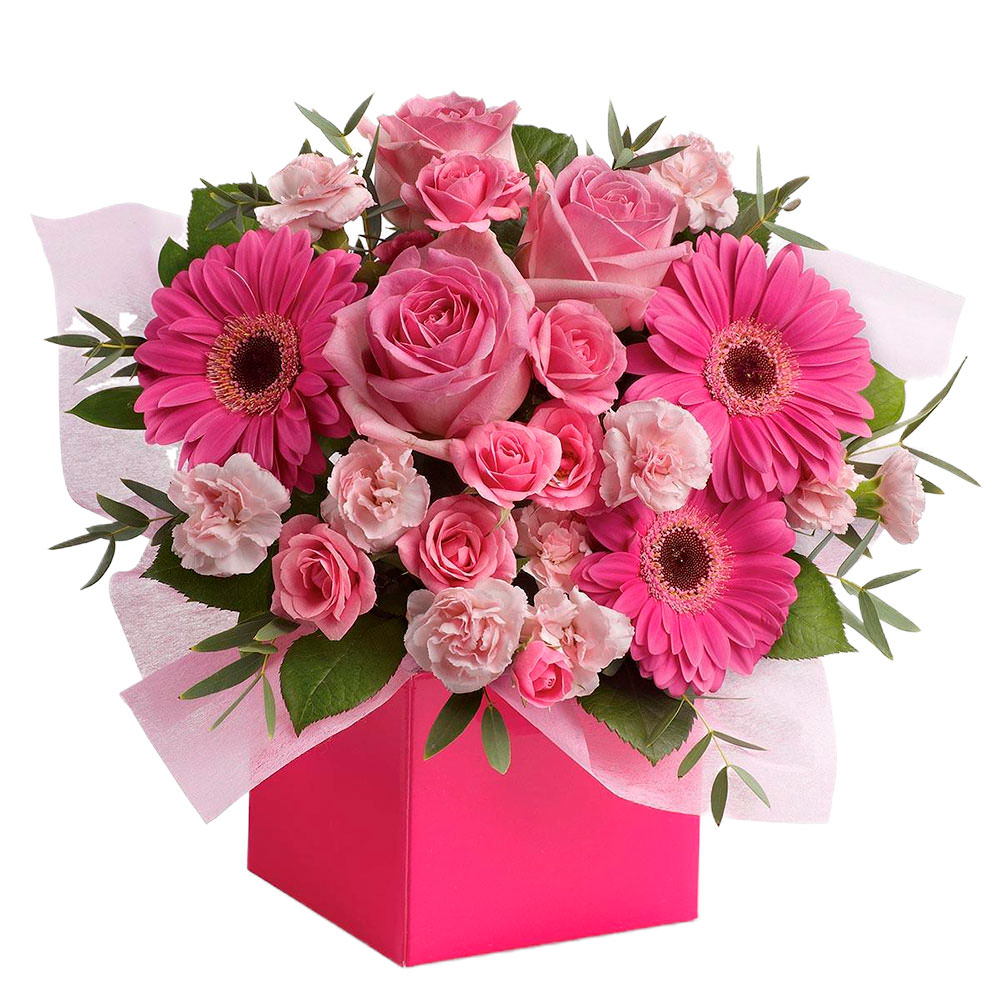 - Цветы в коробке «Розовый микс» - с круглосуточной бесплатной доставкой в Джермуке.